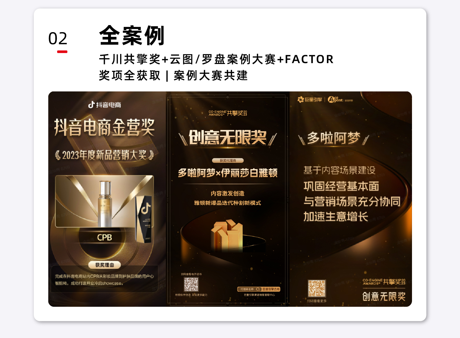 基于品牌人群洞察提炼视觉化卖点的内容能力:根据【FACT+】方法论,通过优质内容打通O-5A人群,用内容链接生意场。与上海戏剧学院共建的联合内容制作团队,确保兼顾内容产量和品质,在内容生产端加速运转,确保品牌在优质内容竞争中跑赢广告素材的巨型消耗,保持创新新素材激发生意增长。