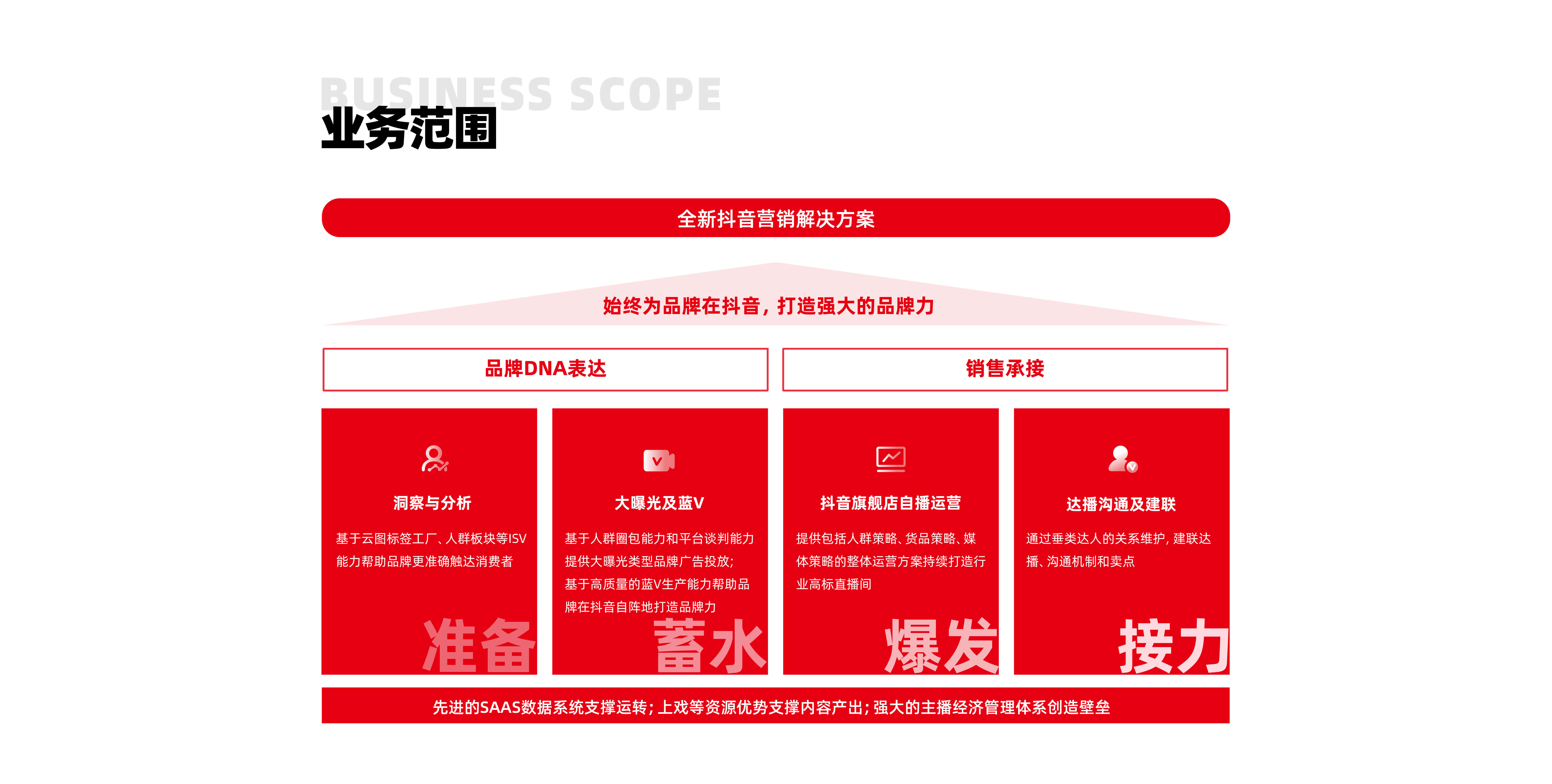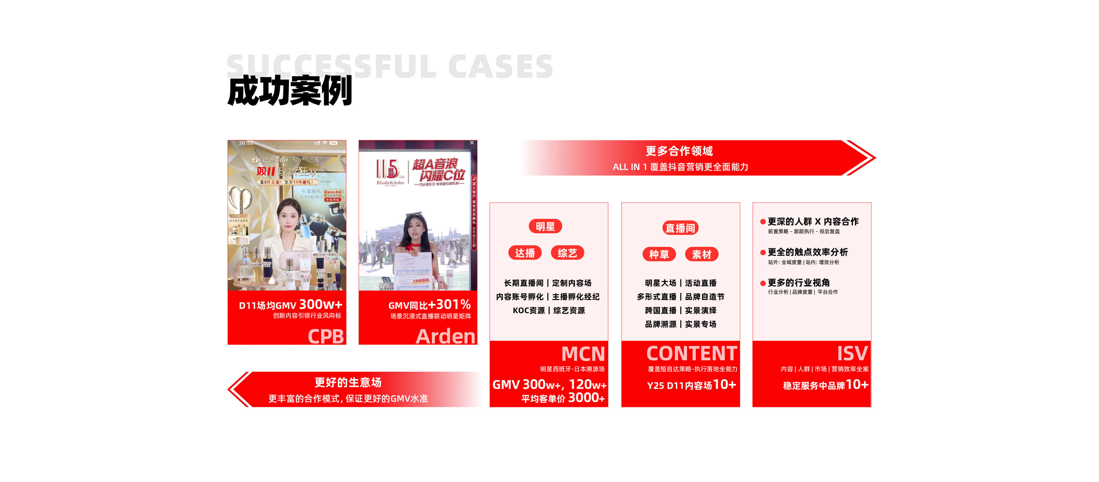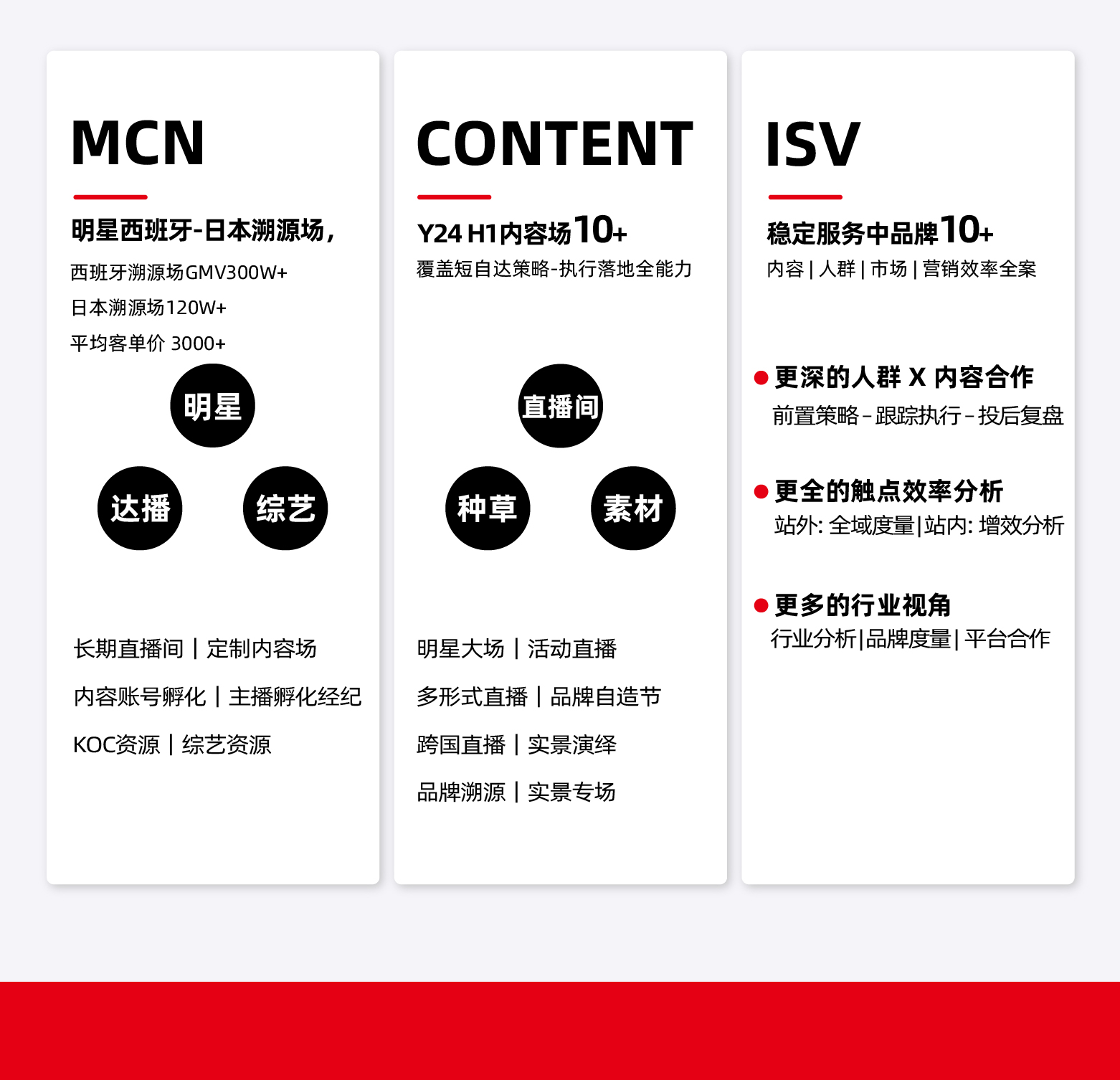 从人货匹配与内容场景价值入手的直播运营能力:从人群策略、货品策略、场景策略等多个运营维度展开优化,精准抓取并稳妥承接流量,采取以产品与场景为主的话术和场内氛围烘托的方式来拉升流量转化率,通过产品组合放大消费者的性价比感知,提高利润,有效促进直播间销量转化,激活站内免费流量,注重“涨粉”和“复购”,逐渐打造爆品,助力品牌实现冷启动,实现品效合一的直播间。